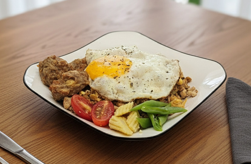 在落兒逅叻谷,我們相信食物該保有最單純的模樣。這道【肌肉豆蔬米】中,最特別它不是米飯!我們以板豆腐碎+白綠花椰菜米+香菇+雞蛋炒製而成,搭配新鮮蔬菜+氣炸豆腐雞,營養更均衡清爽高蛋白,吃起來無負擔~
